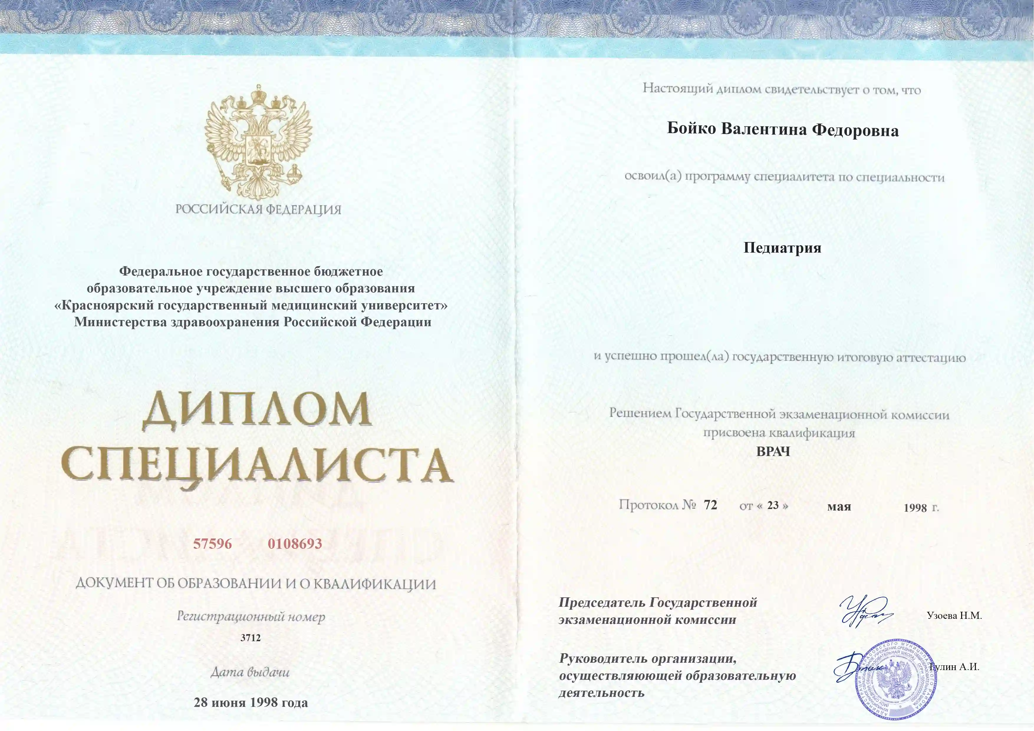 Получила диплом по специальности «Педиатрия» в Красноярском государственном медицинском университете в 1998 году. В 2011 и 2016 годах проходила курсы повышения квалификации по психиатрии и наркологии, включая обучение в Первом Московском государственном медицинском университете имени И. М. Сеченова. Обучение включало современные подходы к диагностике и лечению психических и зависимых состояний.